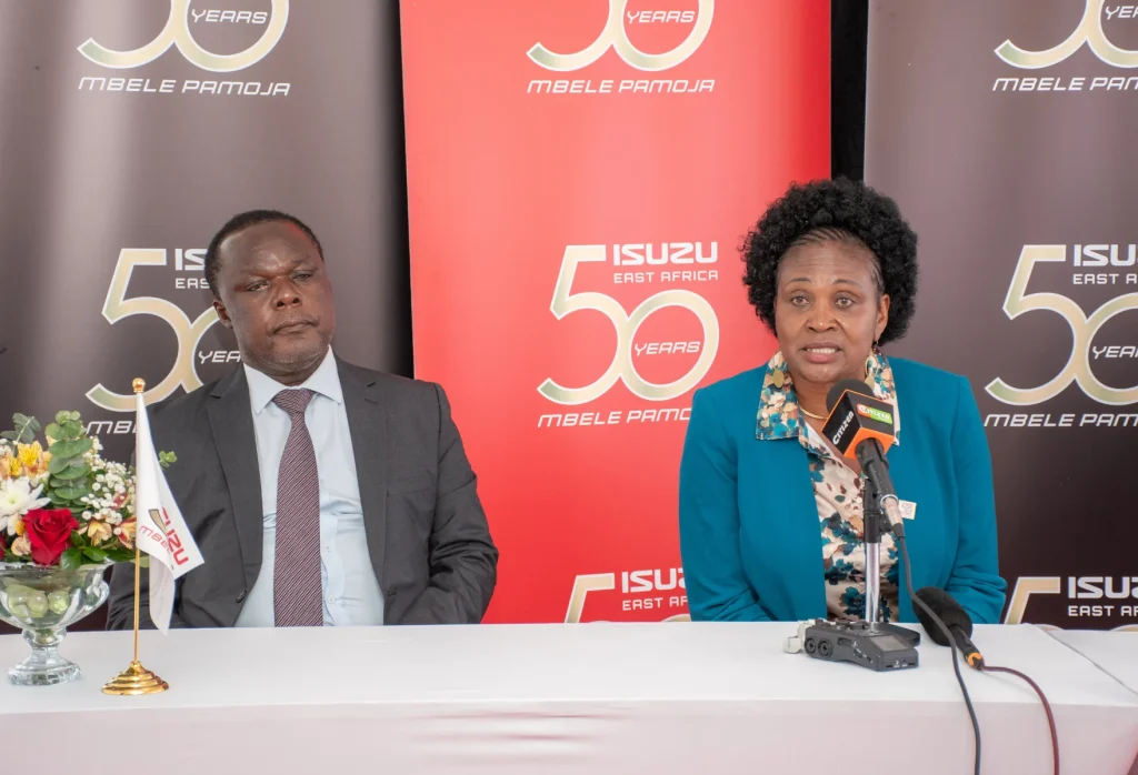 Principal Secretary, State Department of Industry, Dr. Juma Mukhwana, and Isuzu East Africa Chair of the Board and Managing Director, Rita Kavashe, address the press during the company’s 50th Anniversary. Since 2022, Isuzu East Africa has invested KShs 7 billion in manufacturing and after-sales support, including KShs 3.1 billion for a state-of-the-art Parts Distribution Centre in Lukenya, set to serve East and Central Africa.