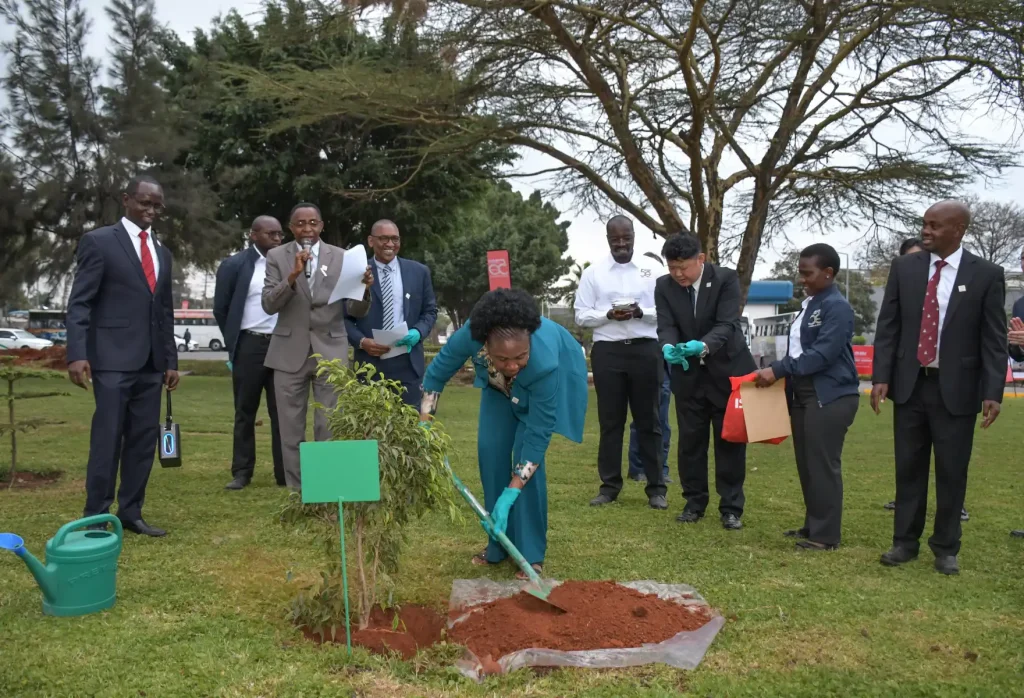 Isuzu East Africa Chair of the Board and Managing Director, Rita Kavashe, plants a tree during Isuzu East Africa’s 50th Anniversary celebrations. The company remains committed to sustainability through tree planting initiatives and the forthcoming launch of electric vehicles.